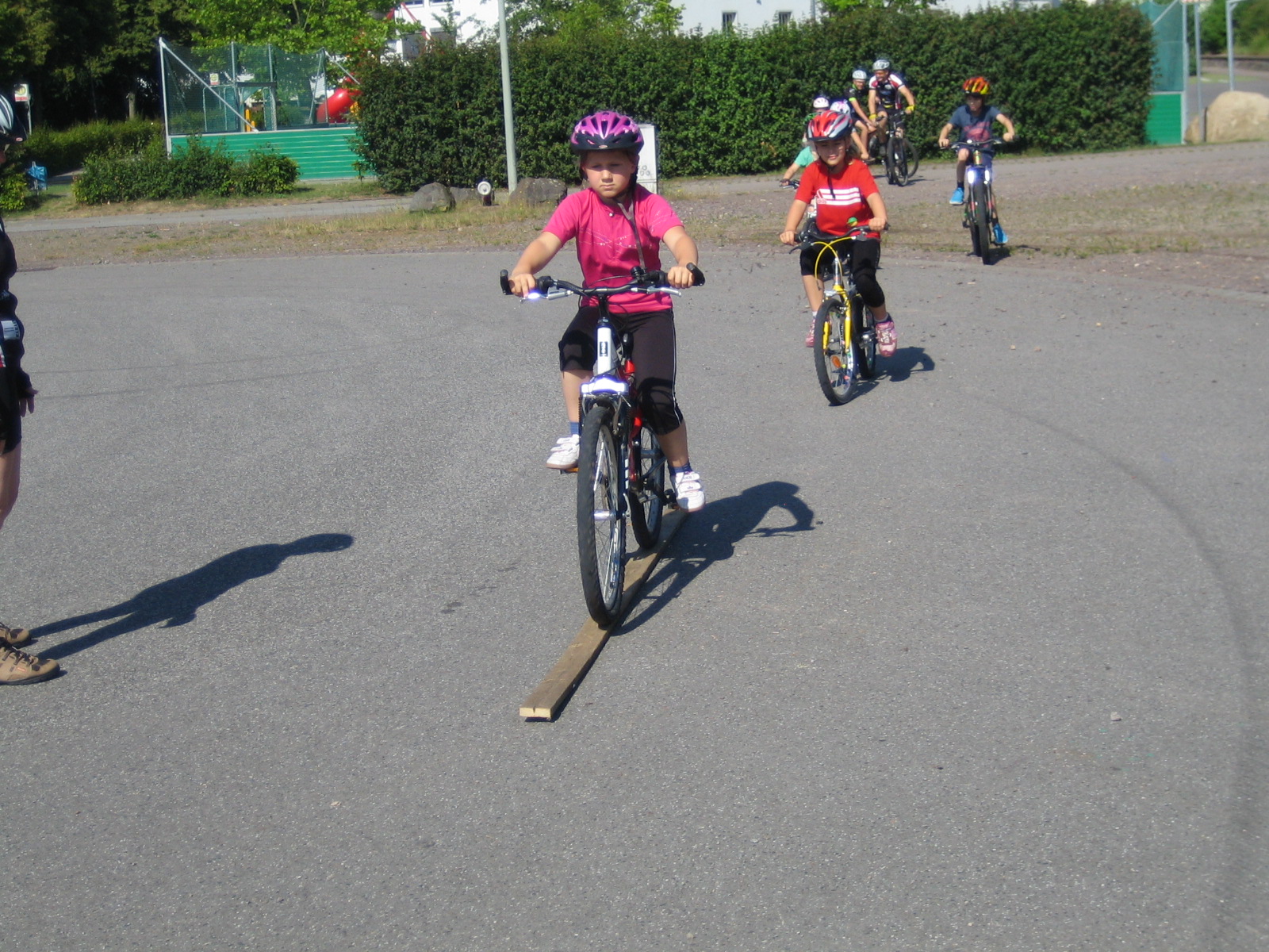 Am Sonntag, 06.07.14 versammelten sich bei schönstem Fahrradwetter 13 Kinder/Jugendliche in Begleitung von 9 Erwachsenen am Tennisheim zum 3.Kidsbiken 2014. Für diesen Tag war Paletten-Training geplant. Bevor es allerdings hiermit losging, gab es „Aufwärmtraining“. Hierzu wurden zwei Gruppen gebildet, die mal rechts und auch mal links aneinander vorbeifuhren und sich während des Fahrens abklatschten. Dann fuhr die Gruppe mehrfach hintereinander über ein ca. 10 cm breites und 3 m langes Brett. Als alle Mitfahrer diese Übung mehrfach hervorragend gemeistert hatten, ging es zur Sache. Zuerst galt es, eine Palette zu befahren. Dann wurden die Hindernisse immer höher und schwieriger, bis sogar 4 Paletten verbaut wurden, die es zu überwinden galt. Beim Anblick dieses Hindernisses gab es von einigen Kids den Ausspruch zu hören: „Hier fahre ich auf gar keinen Fall drüber“. Diese haben den begeisterten Paletten-Fahrern zugesehen und sich nur kurze Zeit später doch anders entschieden und voller Mutes die Paletten überquert. Danach waren alle jungen Fahrer von dem anspruchsvollen Hindernisparcours begeistert und wollten gar nicht mehr mit dem Training aufhören. (Anders als die Kids trauten sich nicht alle Erwachsenen zu, die Paletten zu befahren). Nach fast zwei Stunden Paletten-Training starten alle noch zu einer kleinen Rundfahrt.